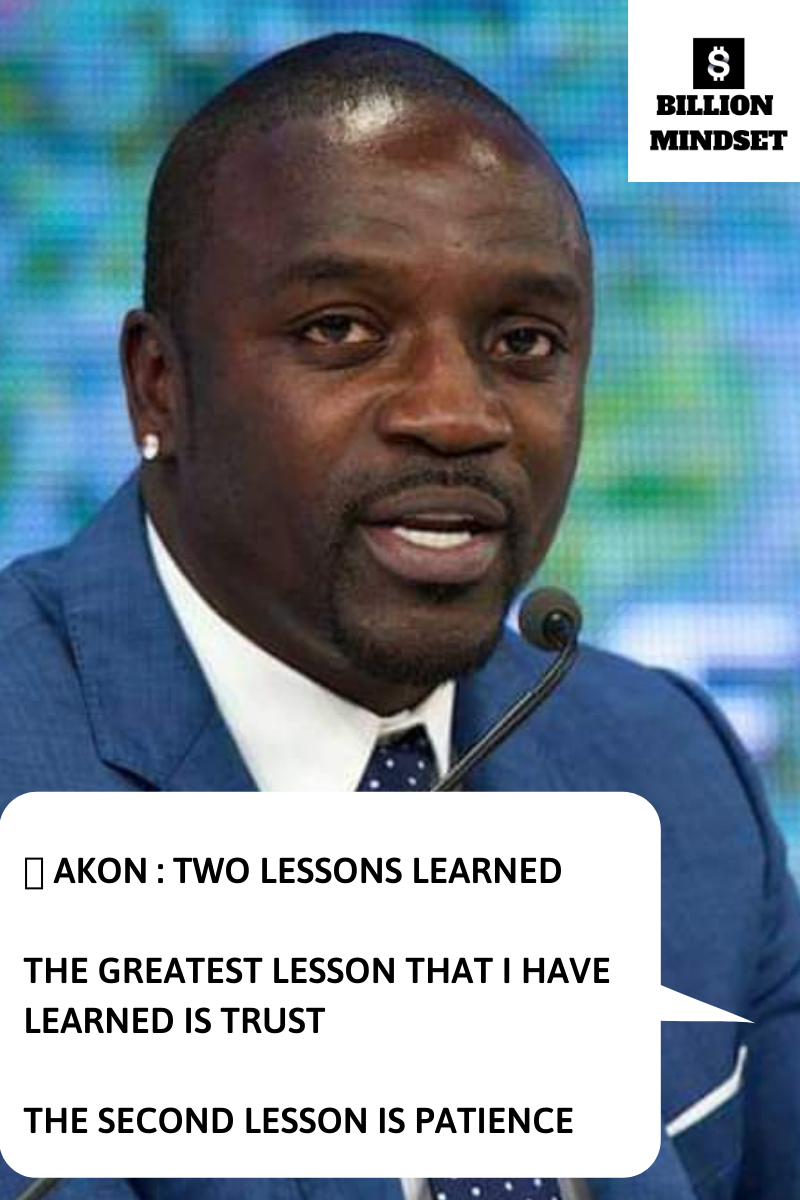 AKON on his two lessons learned – Billion Mindset 0 25th Jan 2020 Written by Vernon The greatest lesson that I have learned is TRUST and PATIENCE.Boss Level ❤️ 💯 😘 👑 True Legend ❤️ 💯 😘 👑 Share this: Click to share on X (Opens in new window) X Click to share on Facebook (Opens in new window) Facebook Like Loading... Related